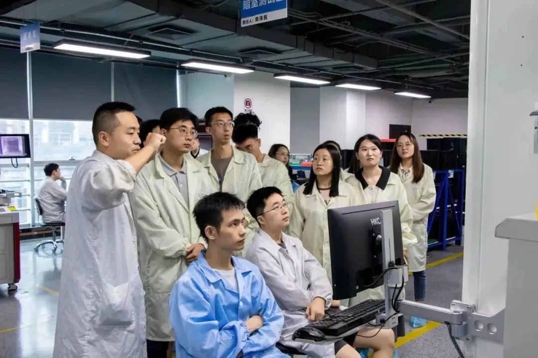 公司副总工程师罗烜博士、生产部经理唐凯带领同学们实地打卡了研发、试制、生产和测试区域,让同学们现场参观了天锐星通的各个工作环境。
